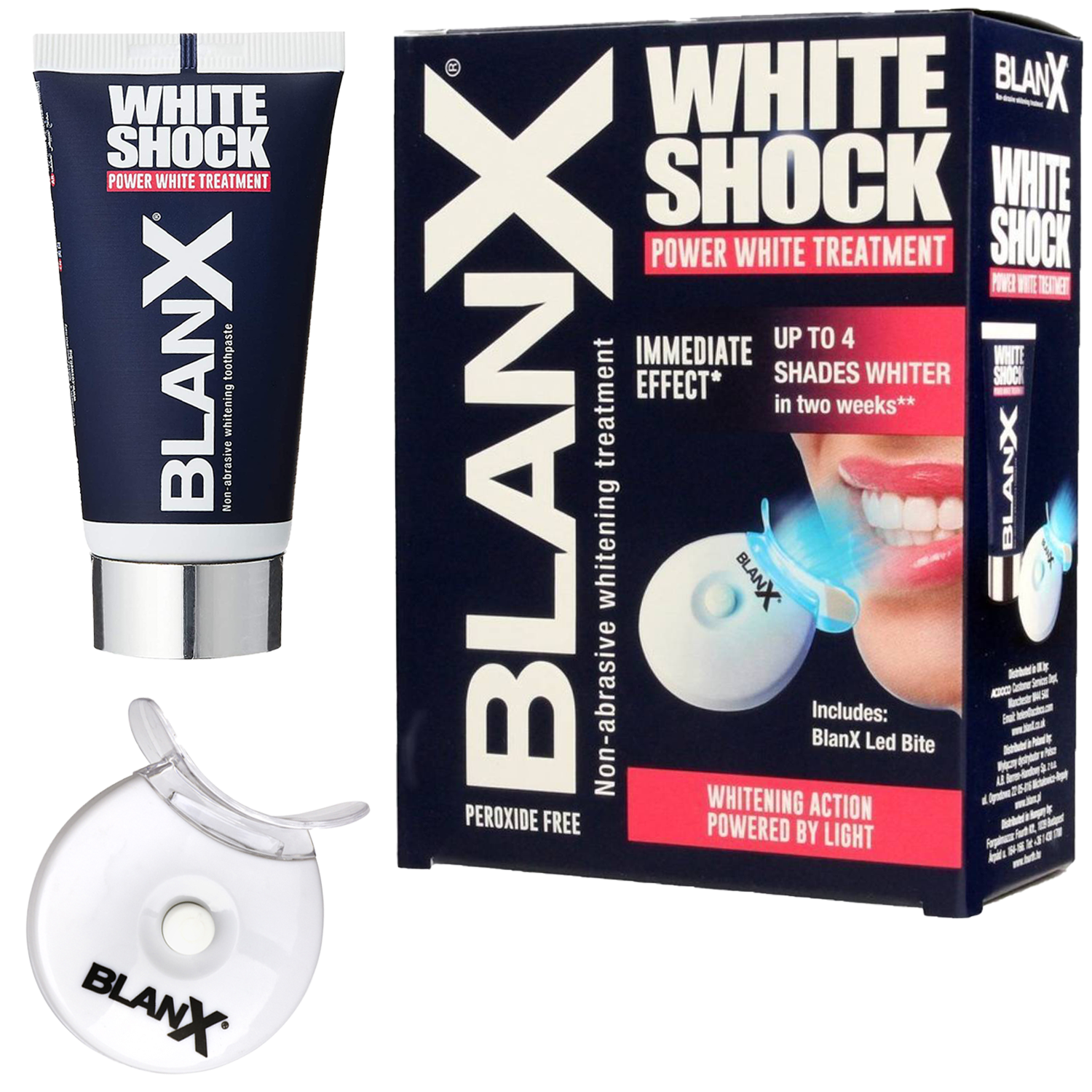 Zestaw zawiera specjalnie opracowaną pastę do zębów oraz lampę LED, która została stworzona do aktywacji formuły BlanX White Shock. Lampa LED intensyfikuje działanie ActiluX, przyspieszając proces wybielania i zapewniając maksymalne efekty. To połączenie gwarantuje skuteczność i widoczne rezultaty w krótkim czasie.