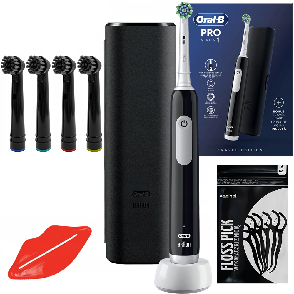 Szczoteczka Oral-B Pro 1 Czarna + etui black + 4x końcówki black+ gratisy